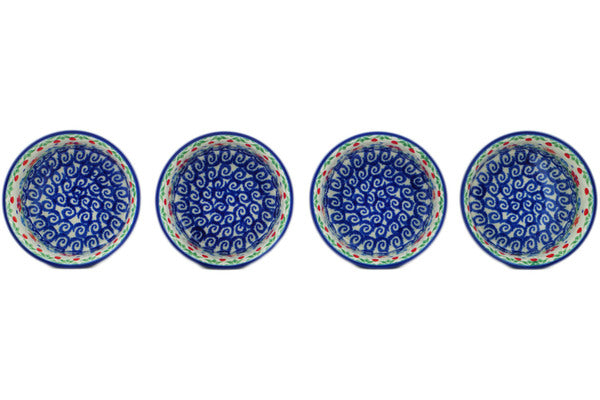 This Babcia's Garden Set of 4 ramekin bowls was handmade and hand decorated in Boleslawiec, Poland by skilled artisans according to old traditional methods. This Polish stoneware is microwave, dishwasher, freezer, and oven safe up to 480°F. It does not contain lead or cadmium. It is part of the Babcia's Garden Collection.