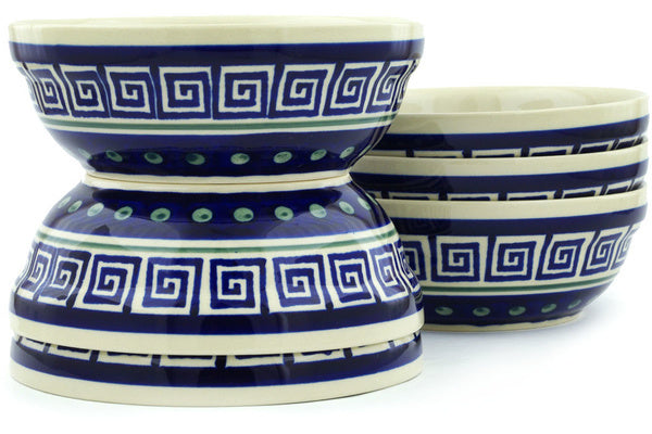 This Greek Key Set of 6 Bowls was handmade and hand decorated in Boleslawiec, Poland by skilled artisans according to old traditional methods. This Polish stoneware is microwave, dishwasher, freezer, and oven safe up to 480°F. It does not contain lead or cadmium. It is part of the Greek Key Collection.