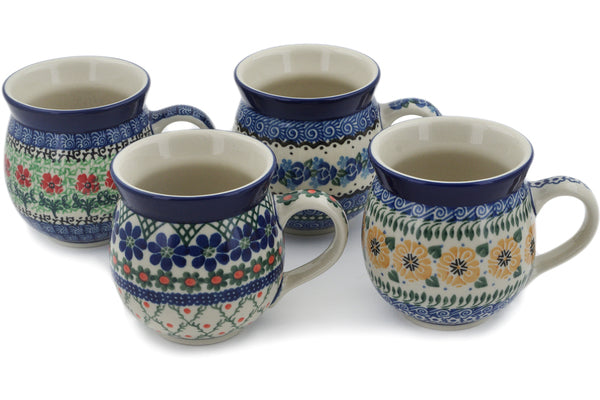 This Mix Set of Four 12 oz Bubble Mugs was handmade and hand decorated in Boleslawiec, Poland by skilled artisans according to old traditional methods. This Polish stoneware is microwave, dishwasher, freezer, and oven safe up to 480°F. It does not contain lead or cadmium. It is part of the Mix Collection.