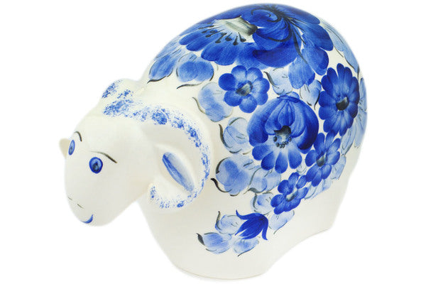 This Lagoon 10" Sheep Figurine was handmade and hand decorated in Boleslawiec, Poland by skilled artisans according to old traditional methods. This Polish stoneware is microwave, dishwasher, freezer, and oven safe up to 480°F. It does not contain lead or cadmium. It is part of the Lagoon Collection.