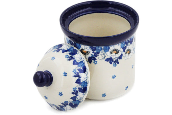 This Blue Spring 6" Small Canister 6" was handmade and hand decorated in Boleslawiec, Poland by skilled artisans according to old traditional methods. This Polish stoneware is microwave, dishwasher, freezer, and oven safe up to 480°F. It does not contain lead or cadmium. It is part of the Blue Spring Collection.