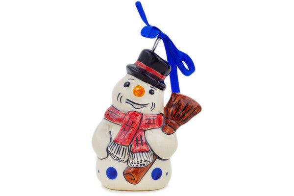 This Azure Polka 4" Snowman Ornament was handmade and hand decorated in Boleslawiec, Poland by skilled artisans according to old traditional methods. This Polish stoneware is microwave, dishwasher, freezer, and oven safe up to 480°F. It does not contain lead or cadmium. It is part of the Azure Polka Collection.
