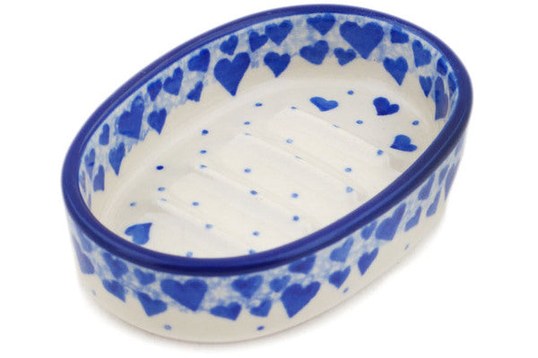 This Cobalt Love 4" Soap Dish was handmade and hand decorated in Boleslawiec, Poland by skilled artisans according to old traditional methods. This Polish stoneware is microwave, dishwasher, freezer, and oven safe up to 480°F. It does not contain lead or cadmium. It is part of the Cobalt Love Collection.