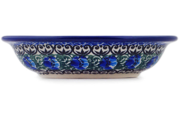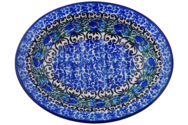 This Peacock Feather 5" Soap Dish was handmade and hand decorated in Boleslawiec, Poland by skilled artisans according to old traditional methods. This Polish stoneware is microwave, dishwasher, freezer, and oven safe up to 480°F. It does not contain lead or cadmium. It is part of the Peacock Feather Collection.