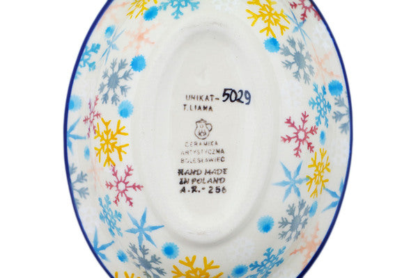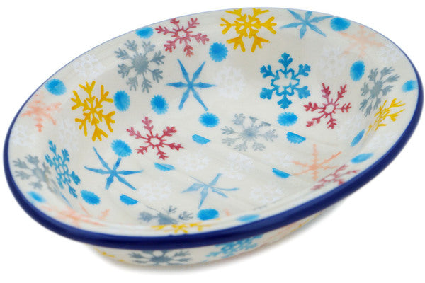 This Vintage Snow Fall 5" Soap Dish was handmade and hand decorated in Boleslawiec, Poland by skilled artisans according to old traditional methods. This is a Polish pottery Signature Unikat, which means that it has been hand painted with both sponges and brushes and it is signed by the artist who painted it. Unikat pieces are the most intricate works of art. Larger Unikat items take hours of very careful work to finish. This Polish stoneware is microwave, dishwasher, freezer, and oven safe up to 480°F. It does not contain lead or cadmium. It is part of the Vintage Snow Fall Collection.
