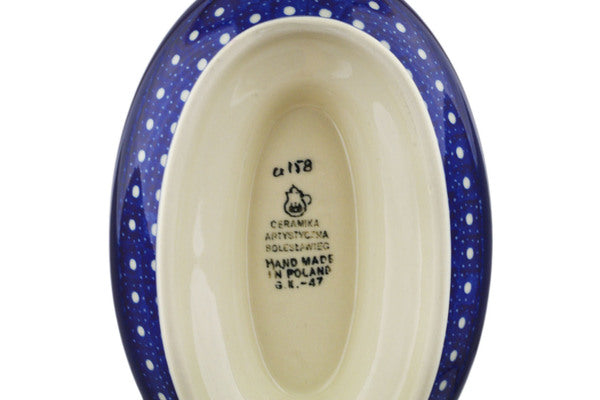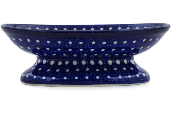 This White Polka Dot 6" Soap Dish was handmade and hand decorated in Boleslawiec, Poland by skilled artisans according to old traditional methods. This is a Polish pottery Signature Unikat, which means that it has been hand painted with both sponges and brushes and it is signed by the artist who painted it. Unikat pieces are the most intricate works of art. Larger Unikat items take hours of very careful work to finish. This Polish stoneware is microwave, dishwasher, freezer, and oven safe up to 480°F. It does not contain lead or cadmium. It is part of the White Polka Dot Collection.