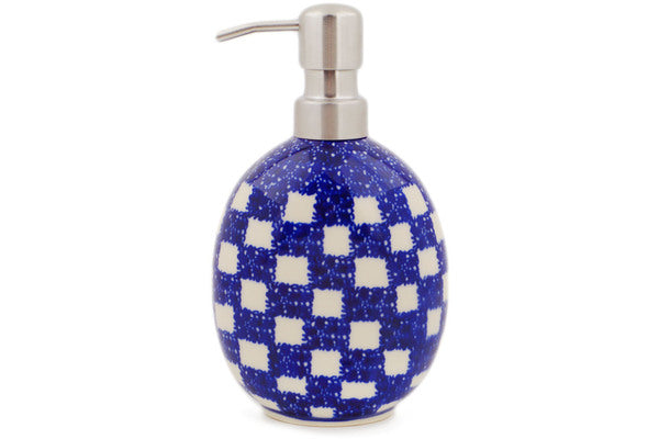 This Floral Checkerboard 6" Soap Dispenser was handmade and hand decorated in Boleslawiec, Poland by skilled artisans according to old traditional methods. This Polish stoneware is microwave, dishwasher, freezer, and oven safe up to 480°F. It does not contain lead or cadmium. It is part of the Floral Checkerboard Collection.