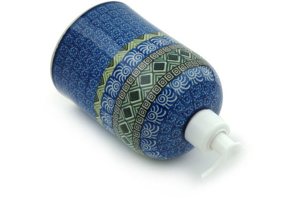 This Sun And Stars 7" Soap Dispenser was handmade and hand decorated in Boleslawiec, Poland by skilled artisans according to old traditional methods. This Polish stoneware is microwave, dishwasher, freezer, and oven safe up to 480°F. It does not contain lead or cadmium. It is part of the Sun And Stars Collection.