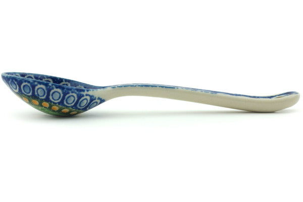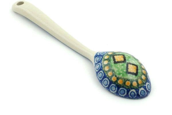 This Stained Glass Window 6" Spoon was handmade and hand decorated in Boleslawiec, Poland by skilled artisans according to old traditional methods. This is a Polish pottery Signature Unikat, which means that it has been hand painted with both sponges and brushes and it is signed by the artist who painted it. Unikat pieces are the most intricate works of art. Larger Unikat items take hours of very careful work to finish. This Polish stoneware is microwave, dishwasher, freezer, and oven safe up to 480°F. It does not contain lead or cadmium. It is part of the Stained Glass Window Collection.