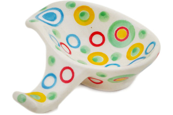 This Retro Olives 4" Spoon Rest was handmade and hand decorated in Boleslawiec, Poland by skilled artisans according to old traditional methods. This is a Polish pottery Signature Unikat, which means that it has been hand painted with both sponges and brushes and it is signed by the artist who painted it. Unikat pieces are the most intricate works of art. Larger Unikat items take hours of very careful work to finish. This Polish stoneware is microwave, dishwasher, freezer, and oven safe up to 480°F. It does not contain lead or cadmium. It is part of the Retro Olives Collection.