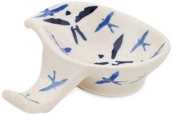 This Soaring Swallows 4" Spoon Rest was handmade and hand decorated in Boleslawiec, Poland by skilled artisans according to old traditional methods. This is a Polish pottery Signature Unikat, which means that it has been hand painted with both sponges and brushes and it is signed by the artist who painted it. Unikat pieces are the most intricate works of art. Larger Unikat items take hours of very careful work to finish. This Polish stoneware is microwave, dishwasher, freezer, and oven safe up to 480°F. It does not contain lead or cadmium. It is part of the Soaring Swallows Collection.