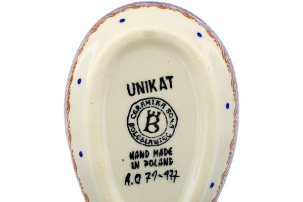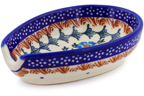 This Blue Cornflower 5" Spoon Rest was handmade and hand decorated in Boleslawiec, Poland by skilled artisans according to old traditional methods. This Polish stoneware is microwave, dishwasher, freezer, and oven safe up to 480°F. It does not contain lead or cadmium. It is part of the Blue Cornflower Collection.