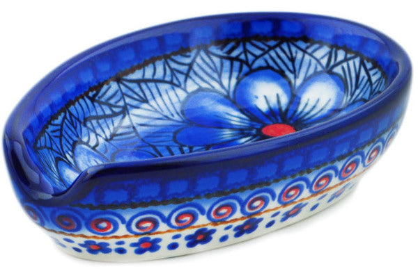 This Blue Heaven 5" Spoon Rest was handmade and hand decorated in Boleslawiec, Poland by skilled artisans according to old traditional methods. This is a Polish pottery Signature Unikat, which means that it has been hand painted with both sponges and brushes and it is signed by the artist who painted it. Unikat pieces are the most intricate works of art. Larger Unikat items take hours of very careful work to finish. This Polish stoneware is microwave, dishwasher, freezer, and oven safe up to 480°F. It does not contain lead or cadmium. It is part of the Blue Heaven Collection.