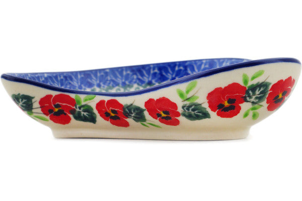 This Delicate Red Flowers 5" Spoon Rest was handmade and hand decorated in Boleslawiec, Poland by skilled artisans according to old traditional methods. This Polish stoneware is microwave, dishwasher, freezer, and oven safe up to 480°F. It does not contain lead or cadmium. It is part of the Delicate Red Flowers Collection.