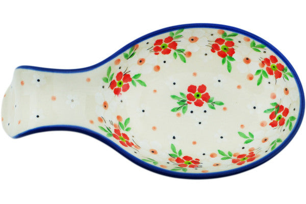 This Blushing Blooms 7" Spoon Rest was handmade and hand decorated in Boleslawiec, Poland by skilled artisans according to old traditional methods. This Polish stoneware is microwave, dishwasher, freezer, and oven safe up to 480°F. It does not contain lead or cadmium. It is part of the Blushing Blooms Collection.