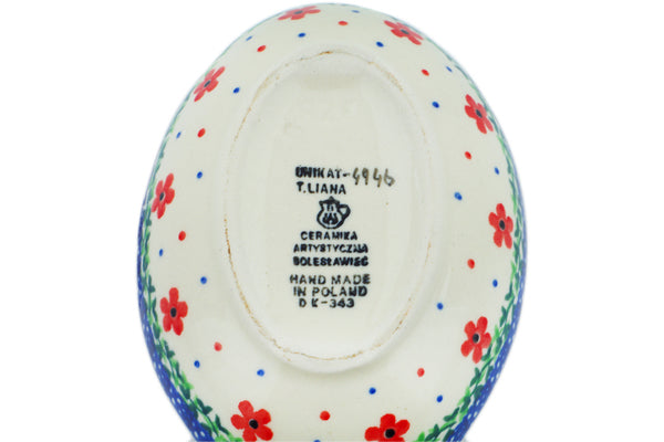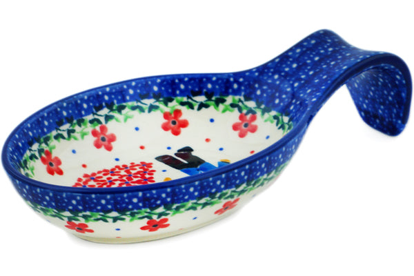 This Royal Teddy 7" Spoon Rest was handmade and hand decorated in Boleslawiec, Poland by skilled artisans according to old traditional methods. This is a Polish pottery Signature Unikat, which means that it has been hand painted with both sponges and brushes and it is signed by the artist who painted it. Unikat pieces are the most intricate works of art. Larger Unikat items take hours of very careful work to finish. This Polish stoneware is microwave, dishwasher, freezer, and oven safe up to 480°F. It does not contain lead or cadmium. It is part of the Royal Teddy Collection.