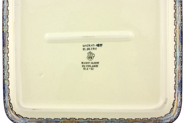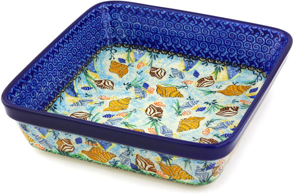 This Ocean Whisper 10" Square Baker was handmade and hand decorated in Boleslawiec, Poland by skilled artisans according to old traditional methods. This is a Polish pottery Signature Unikat, which means that it has been hand painted with both sponges and brushes and it is signed by the artist who painted it. Unikat pieces are the most intricate works of art. Larger Unikat items take hours of very careful work to finish. This Polish stoneware is microwave, dishwasher, freezer, and oven safe up to 480°F. It does not contain lead or cadmium. It is part of the Ocean Whisper Collection.