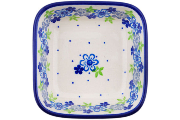 This Blue And Green Flower Dream 4" Square Bowl was handmade and hand decorated in Boleslawiec, Poland by skilled artisans according to old traditional methods. This Polish stoneware is microwave, dishwasher, freezer, and oven safe up to 480°F. It does not contain lead or cadmium. It is part of the Blue And Green Flower Dream Collection.