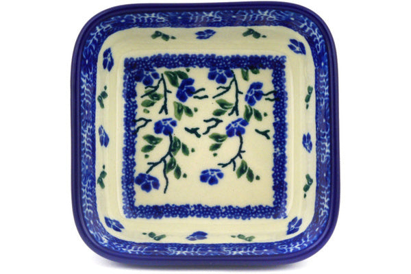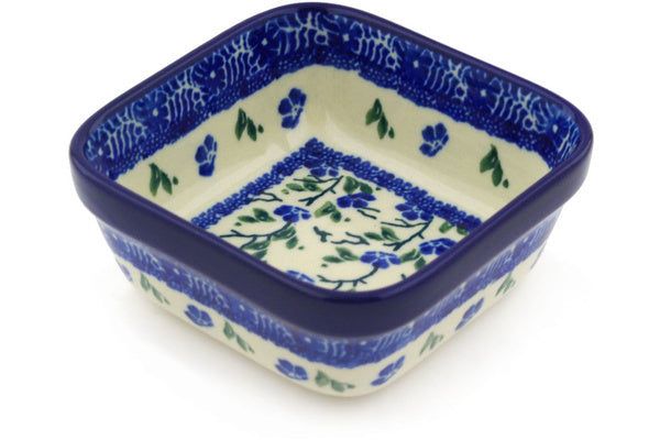 This Cascading Blue Blossoms 4" Square Bowl was handmade and hand decorated in Boleslawiec, Poland by skilled artisans according to old traditional methods. This Polish stoneware is microwave, dishwasher, freezer, and oven safe up to 480°F. It does not contain lead or cadmium. It is part of the Cascading Blue Blossoms Collection.