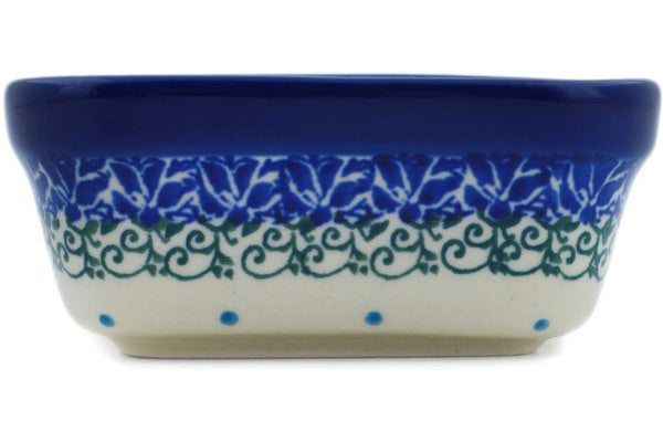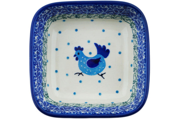 This Chicken Merry-Go-Round 4" Square Bowl was handmade and hand decorated in Boleslawiec, Poland by skilled artisans according to old traditional methods. This is a Polish pottery Signature Unikat, which means that it has been hand painted with both sponges and brushes and it is signed by the artist who painted it. Unikat pieces are the most intricate works of art. Larger Unikat items take hours of very careful work to finish. This Polish stoneware is microwave, dishwasher, freezer, and oven safe up to 480°F. It does not contain lead or cadmium. It is part of the Chicken Merry-Go-Round Collection.