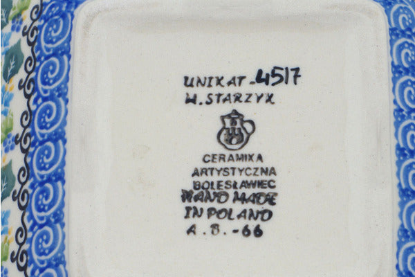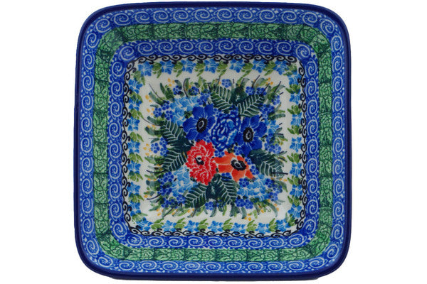This Spring Meadow 6" Square Bowl was handmade and hand decorated in Boleslawiec, Poland by skilled artisans according to old traditional methods. This is a Polish pottery Signature Unikat, which means that it has been hand painted with both sponges and brushes and it is signed by the artist who painted it. Unikat pieces are the most intricate works of art. Larger Unikat items take hours of very careful work to finish. This Polish stoneware is microwave, dishwasher, freezer, and oven safe up to 480°F. It does not contain lead or cadmium. It is part of the Spring Meadow Collection.