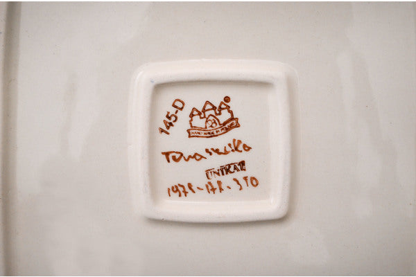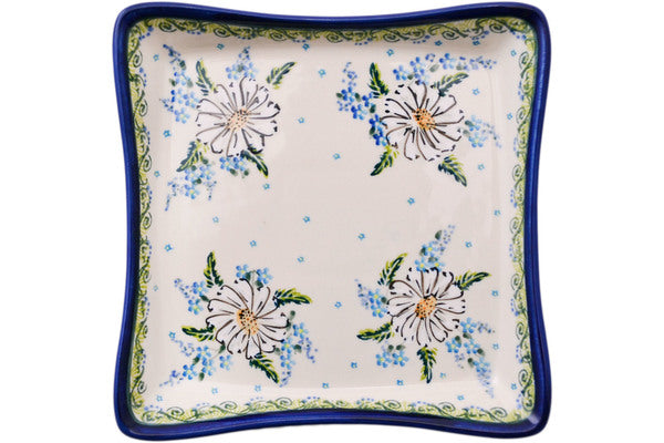 This Corning Daisy 7" Square Plate was handmade and hand decorated in Boleslawiec, Poland by skilled artisans according to old traditional methods. This is a Polish pottery Signature Unikat, which means that it has been hand painted with both sponges and brushes and it is signed by the artist who painted it. Unikat pieces are the most intricate works of art. Larger Unikat items take hours of very careful work to finish. This Polish stoneware is microwave, dishwasher, freezer, and oven safe up to 480°F. It does not contain lead or cadmium. It is part of the Corning Daisy Collection.