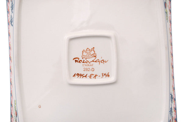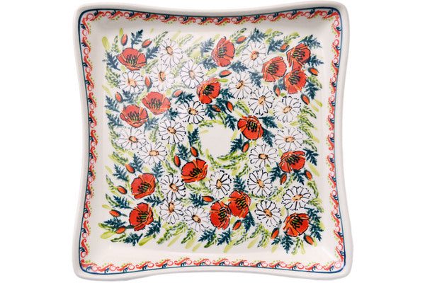This Poppy-Go-Round 9" Square Plate was handmade and hand decorated in Boleslawiec, Poland by skilled artisans according to old traditional methods. This is a Polish pottery Signature Unikat, which means that it has been hand painted with both sponges and brushes and it is signed by the artist who painted it. Unikat pieces are the most intricate works of art. Larger Unikat items take hours of very careful work to finish. This Polish stoneware is microwave, dishwasher, freezer, and oven safe up to 480°F. It does not contain lead or cadmium. It is part of the Poppy-Go-Round Collection.