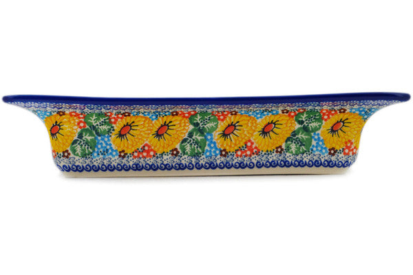 This Enchanted Spring 12" Square Platter was handmade and hand decorated in Boleslawiec, Poland by skilled artisans according to old traditional methods. This is a Polish pottery Signature Unikat, which means that it has been hand painted with both sponges and brushes and it is signed by the artist who painted it. Unikat pieces are the most intricate works of art. Larger Unikat items take hours of very careful work to finish. This Polish stoneware is microwave, dishwasher, freezer, and oven safe up to 480°F. It does not contain lead or cadmium. It is part of the Enchanted Spring Collection.