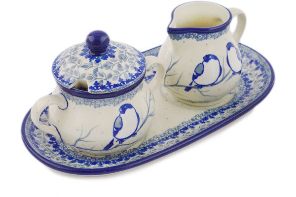 Sugar and Creamer Set 10" Waiting Birds Theme UNIKAT