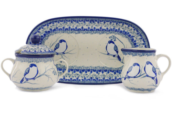 This Waiting Birds 10" Sugar and Creamer Set was handmade and hand decorated in Boleslawiec, Poland by skilled artisans according to old traditional methods. This is a Polish pottery Signature Unikat, which means that it has been hand painted with both sponges and brushes and it is signed by the artist who painted it. Unikat pieces are the most intricate works of art. Larger Unikat items take hours of very careful work to finish. This Polish stoneware is microwave, dishwasher, freezer, and oven safe up to 480°F. It does not contain lead or cadmium. It is part of the Waiting Birds Collection.