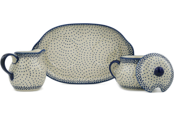 Sugar and Creamer Set 9" Misty Blue Theme UNIKAT