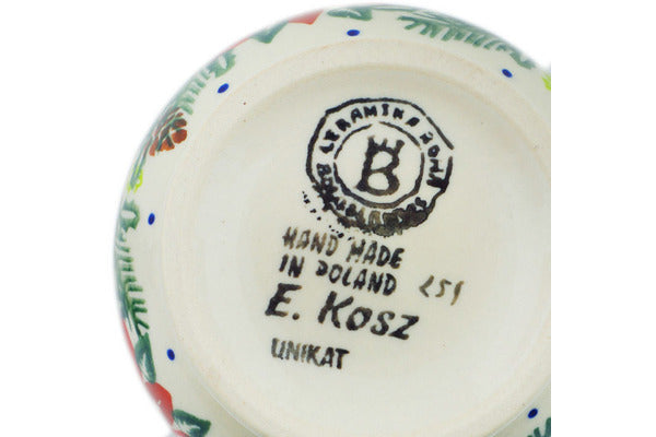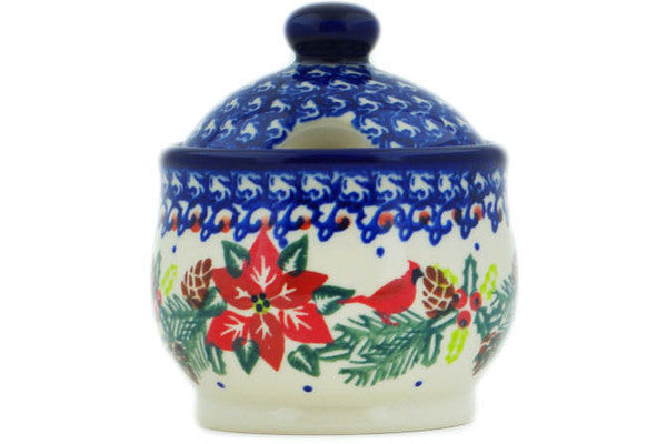 This Cardinal's Home 9 oz Sugar Bowl was handmade and hand decorated in Boleslawiec, Poland by skilled artisans according to old traditional methods. This is a Polish pottery Signature Unikat, which means that it has been hand painted with both sponges and brushes and it is signed by the artist who painted it. Unikat pieces are the most intricate works of art. Larger Unikat items take hours of very careful work to finish. This Polish stoneware is microwave, dishwasher, freezer, and oven safe up to 480°F. It does not contain lead or cadmium. It is part of the Cardinal's Home Collection.