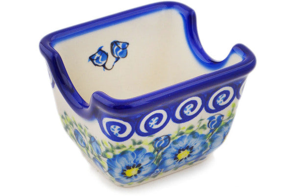 This Gorgeous Morning Glory 3" Sugar Packet Holder was handmade and hand decorated in Boleslawiec, Poland by skilled artisans according to old traditional methods. This is a Polish pottery Signature Unikat, which means that it has been hand painted with both sponges and brushes and it is signed by the artist who painted it. Unikat pieces are the most intricate works of art. Larger Unikat items take hours of very careful work to finish. This Polish stoneware is microwave, dishwasher, freezer, and oven safe up to 480°F. It does not contain lead or cadmium. It is part of the Gorgeous Morning Glory Collection.