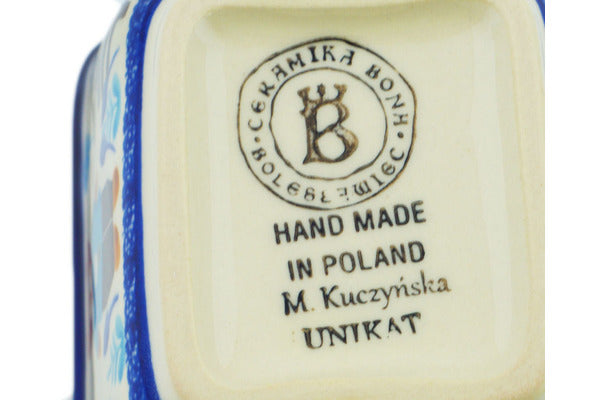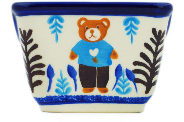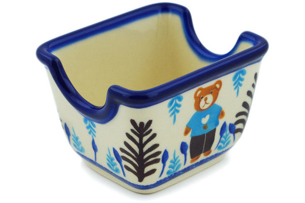 This Teddy's Love 4" Sugar Packet Holder was handmade and hand decorated in Boleslawiec, Poland by skilled artisans according to old traditional methods. This is a Polish pottery Signature Unikat, which means that it has been hand painted with both sponges and brushes and it is signed by the artist who painted it. Unikat pieces are the most intricate works of art. Larger Unikat items take hours of very careful work to finish. This Polish stoneware is microwave, dishwasher, freezer, and oven safe up to 480°F. It does not contain lead or cadmium. It is part of the Teddy's Love Collection.