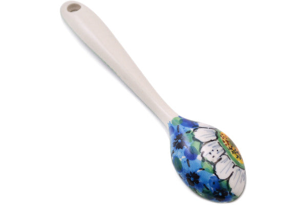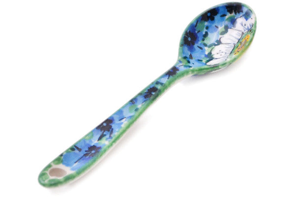 This Pansies And Daisies 5" Sugar Spoon was handmade and hand decorated in Boleslawiec, Poland by skilled artisans according to old traditional methods. This is a Polish pottery Signature Unikat, which means that it has been hand painted with both sponges and brushes and it is signed by the artist who painted it. Unikat pieces are the most intricate works of art. Larger Unikat items take hours of very careful work to finish. This Polish stoneware is microwave, dishwasher, freezer, and oven safe up to 480°F. It does not contain lead or cadmium. It is part of the Pansies And Daisies Collection.