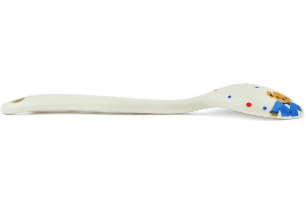 This Royal Teddy 5" Sugar Spoon was handmade and hand decorated in Boleslawiec, Poland by skilled artisans according to old traditional methods. This is a Polish pottery Signature Unikat, which means that it has been hand painted with both sponges and brushes and it is signed by the artist who painted it. Unikat pieces are the most intricate works of art. Larger Unikat items take hours of very careful work to finish. This Polish stoneware is microwave, dishwasher, freezer, and oven safe up to 480°F. It does not contain lead or cadmium. It is part of the Royal Teddy Collection.
