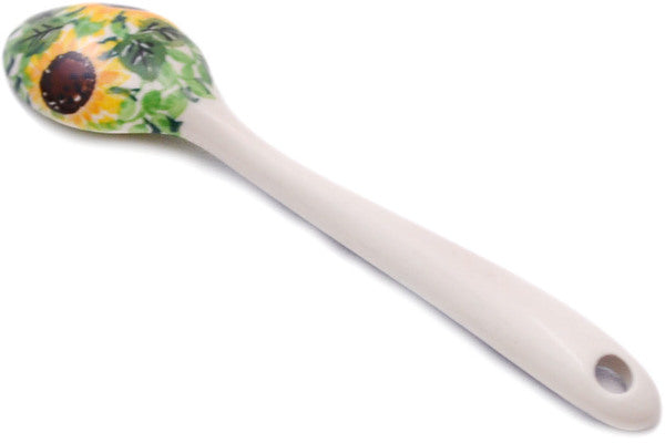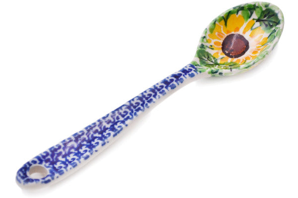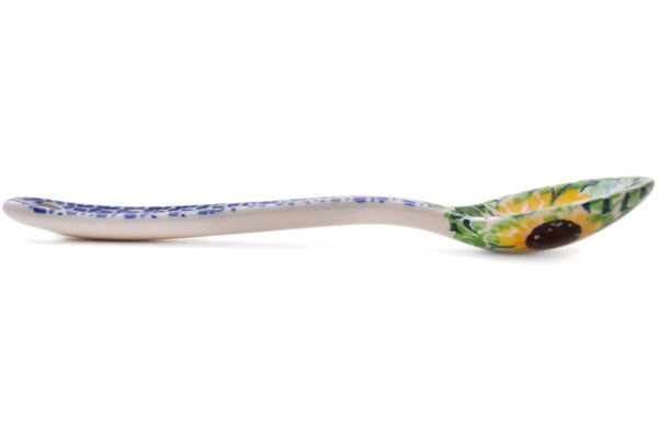 This Summer Sunnies 5" Sugar Spoon was handmade and hand decorated in Boleslawiec, Poland by skilled artisans according to old traditional methods. This is a Polish pottery Signature Unikat, which means that it has been hand painted with both sponges and brushes and it is signed by the artist who painted it. Unikat pieces are the most intricate works of art. Larger Unikat items take hours of very careful work to finish. This Polish stoneware is microwave, dishwasher, freezer, and oven safe up to 480°F. It does not contain lead or cadmium. It is part of the Summer Sunnies Collection.