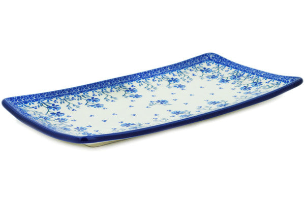 This Blue Grapevine 12" Sushi Tray was handmade and hand decorated in Boleslawiec, Poland by skilled artisans according to old traditional methods. This Polish stoneware is microwave, dishwasher, freezer, and oven safe up to 480°F. It does not contain lead or cadmium. It is part of the Blue Grapevine Collection.