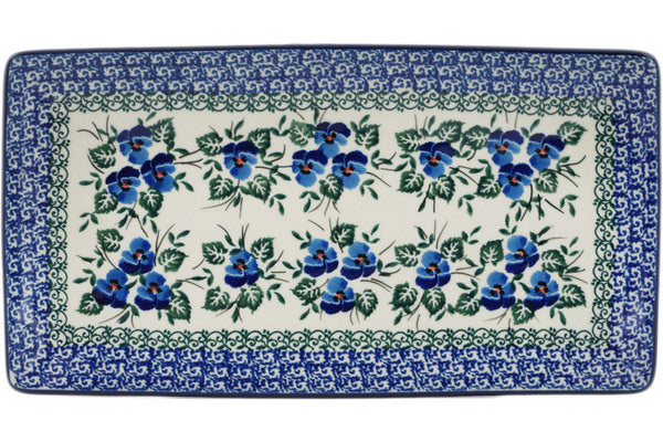 This Blue Pansy 12" Sushi Tray was handmade and hand decorated in Boleslawiec, Poland by skilled artisans according to old traditional methods. This Polish stoneware is microwave, dishwasher, freezer, and oven safe up to 480°F. It does not contain lead or cadmium. It is part of the Blue Pansy Collection.