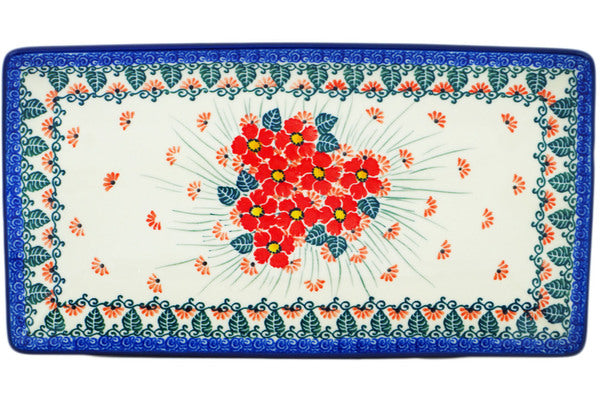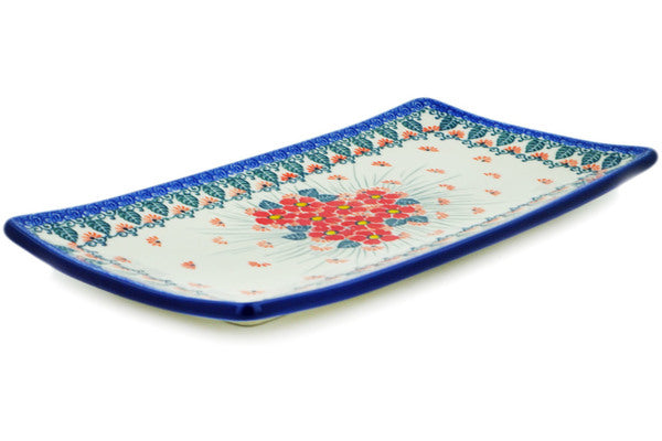 This Pink Forget Me Not 12" Sushi Tray was handmade and hand decorated in Boleslawiec, Poland by skilled artisans according to old traditional methods. This is a Polish pottery Signature Unikat, which means that it has been hand painted with both sponges and brushes and it is signed by the artist who painted it. Unikat pieces are the most intricate works of art. Larger Unikat items take hours of very careful work to finish. This Polish stoneware is microwave, dishwasher, freezer, and oven safe up to 480°F. It does not contain lead or cadmium. It is part of the Pink Forget Me Not Collection.