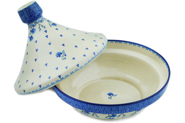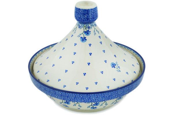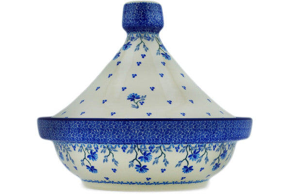 This Blue Grapevine 57 oz Tagine Pot was handmade and hand decorated in Boleslawiec, Poland by skilled artisans according to old traditional methods. This Polish stoneware is microwave, dishwasher, freezer, and oven safe up to 480°F. It does not contain lead or cadmium. It is part of the Blue Grapevine Collection.