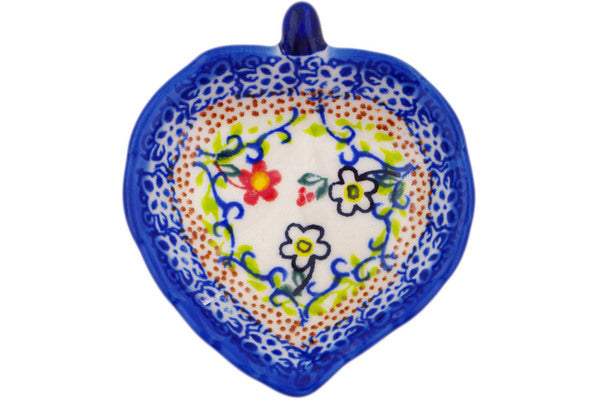 This Floral Trio 4" Tea Bag or Lemon Plate was handmade and hand decorated in Boleslawiec, Poland by skilled artisans according to old traditional methods. This Polish stoneware is microwave, dishwasher, freezer, and oven safe up to 480°F. It does not contain lead or cadmium. It is part of the Floral Trio Collection.