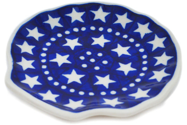 This Midnight Stars 4" Tea Bag or Lemon Plate was handmade and hand decorated in Boleslawiec, Poland by skilled artisans according to old traditional methods. This Polish stoneware is microwave, dishwasher, freezer, and oven safe up to 480°F. It does not contain lead or cadmium. It is part of the Midnight Stars Collection.
