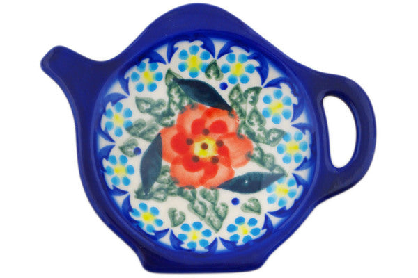 This Peach Tudor Rose 4" Tea Bag or Lemon Plate was handmade and hand decorated in Boleslawiec, Poland by skilled artisans according to old traditional methods. This Polish stoneware is microwave, dishwasher, freezer, and oven safe up to 480°F. It does not contain lead or cadmium. It is part of the Peach Tudor Rose Collection.