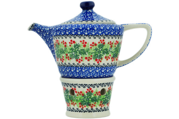 This Blooming Rowan 14 oz Tea or Coffee Pot with Heater was handmade and hand decorated in Boleslawiec, Poland by skilled artisans according to old traditional methods. This Polish stoneware is microwave, dishwasher, freezer, and oven safe up to 480°F. It does not contain lead or cadmium. It is part of the Blooming Rowan Collection.
