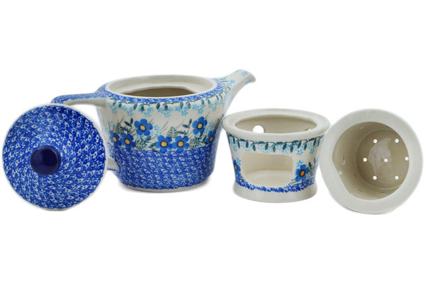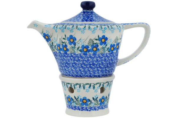 This Blue Joy 14 oz Tea or Coffee Pot with Heater was handmade and hand decorated in Boleslawiec, Poland by skilled artisans according to old traditional methods. This Polish stoneware is microwave, dishwasher, freezer, and oven safe up to 480°F. It does not contain lead or cadmium. It is part of the Blue Joy Collection.