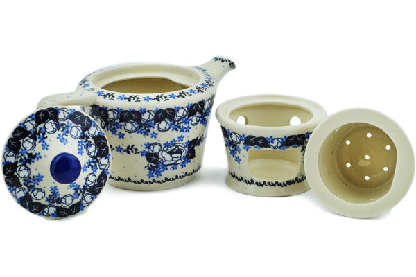 This Flowers At Dusk 14 oz Tea or Coffee Pot with Heater was handmade and hand decorated in Boleslawiec, Poland by skilled artisans according to old traditional methods. This Polish stoneware is microwave, dishwasher, freezer, and oven safe up to 480°F. It does not contain lead or cadmium. It is part of the Flowers At Dusk Collection.