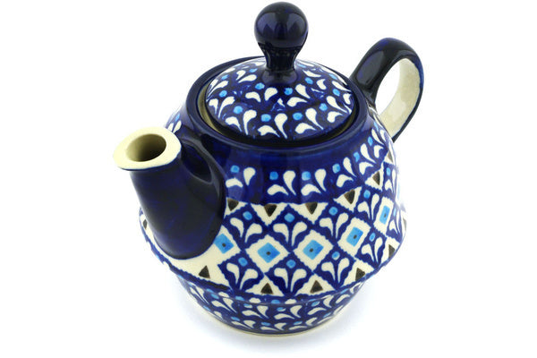 This Blue Diamond Dream 10 oz Tea or Coffee Pot was handmade and hand decorated in Boleslawiec, Poland by skilled artisans according to old traditional methods. This Polish stoneware is microwave, dishwasher, freezer, and oven safe up to 480°F. It does not contain lead or cadmium. It is part of the Blue Diamond Dream Collection.