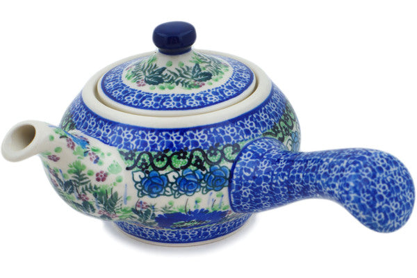 This Blue Meadow 11 oz Tea or Coffee Pot was handmade and hand decorated in Boleslawiec, Poland by skilled artisans according to old traditional methods. This is a Polish pottery Signature Unikat, which means that it has been hand painted with both sponges and brushes and it is signed by the artist who painted it. Unikat pieces are the most intricate works of art. Larger Unikat items take hours of very careful work to finish. This Polish stoneware is microwave, dishwasher, freezer, and oven safe up to 480°F. It does not contain lead or cadmium. It is part of the Blue Meadow Collection.
