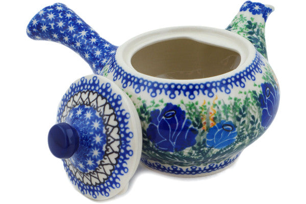 This Brilliant Blue Rose 11 oz Tea or Coffee Pot was handmade and hand decorated in Boleslawiec, Poland by skilled artisans according to old traditional methods. This is a Polish pottery Signature Unikat, which means that it has been hand painted with both sponges and brushes and it is signed by the artist who painted it. Unikat pieces are the most intricate works of art. Larger Unikat items take hours of very careful work to finish. This Polish stoneware is microwave, dishwasher, freezer, and oven safe up to 480°F. It does not contain lead or cadmium. It is part of the Brilliant Blue Rose Collection.
